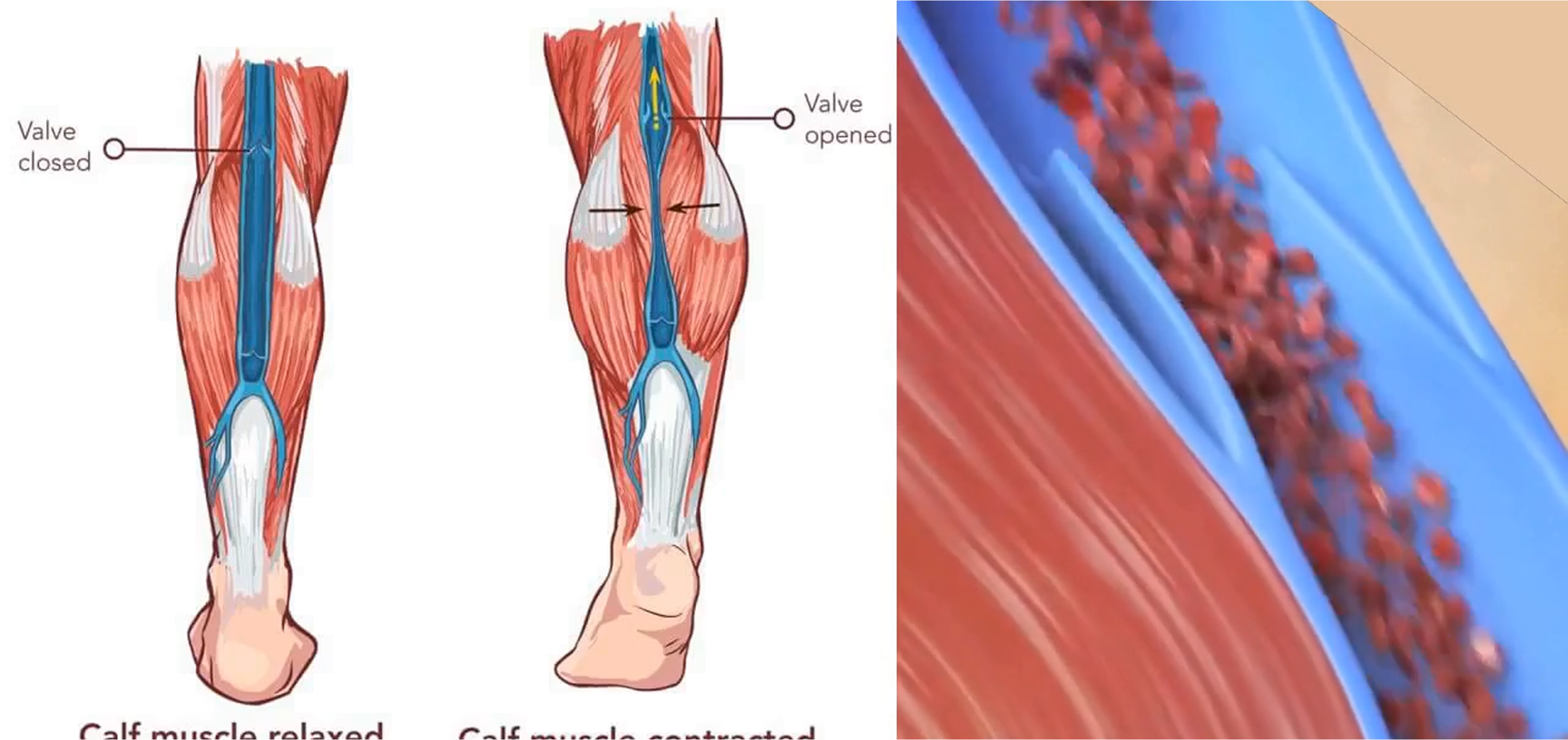When your calf muscles contract, they compress the blood vessels in your legs and push the blood from your feet back up toward your heart.