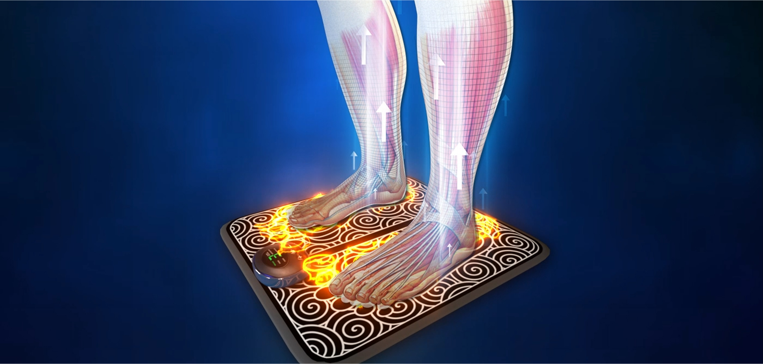 It works by placing your feet on a very specific pad made from a special rubber material that conducts electricity.